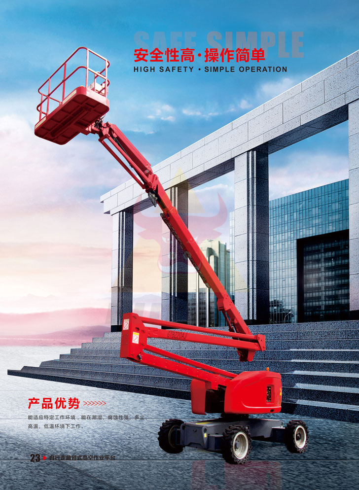 曲臂式高空作業(yè)平臺(tái)具有伸縮臂,能懸伸作業(yè),跨越一定的障礙或在一處升降可進(jìn)行多點(diǎn)作業(yè);升降平臺(tái)移動(dòng)性好,轉(zhuǎn)移場(chǎng)地方便;外觀美觀,適于室內(nèi)外作業(yè)和存放。