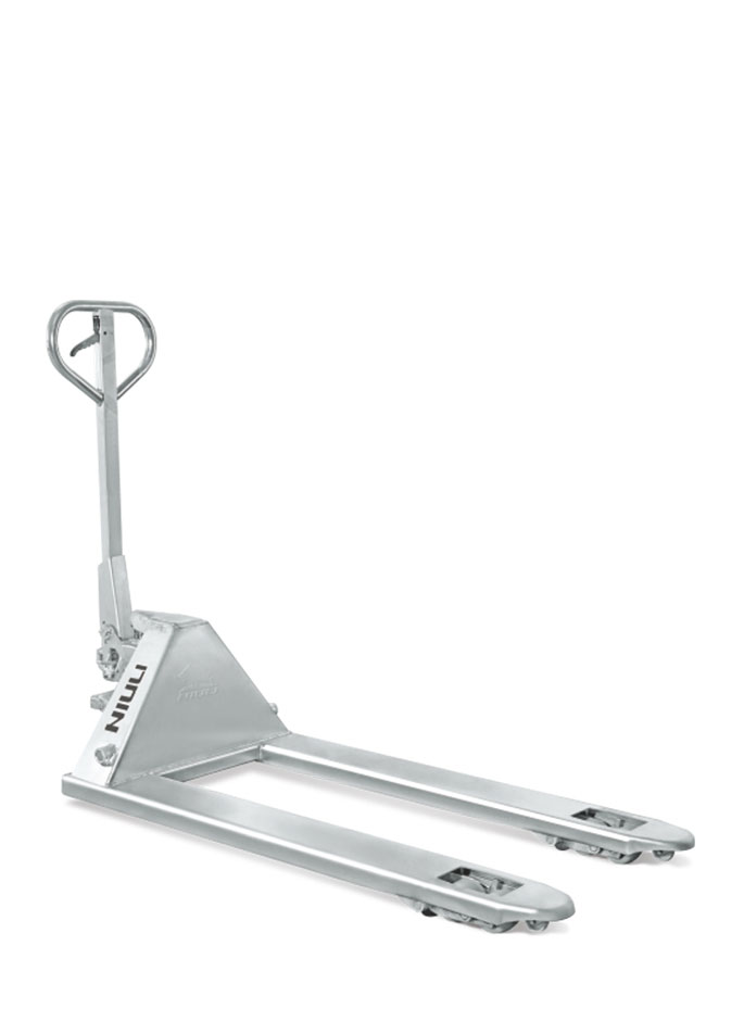 鍍鋅搬運車油缸采用防漏設(shè)計,車架、手把、油缸等裸露在外部的零件全部經(jīng)過鍍鋅處理,配置不銹鋼軸承,耐磨尼龍輪,抗腐能力強。適用于冷庫及潔凈度、抗腐蝕性要求比較高的場所。
