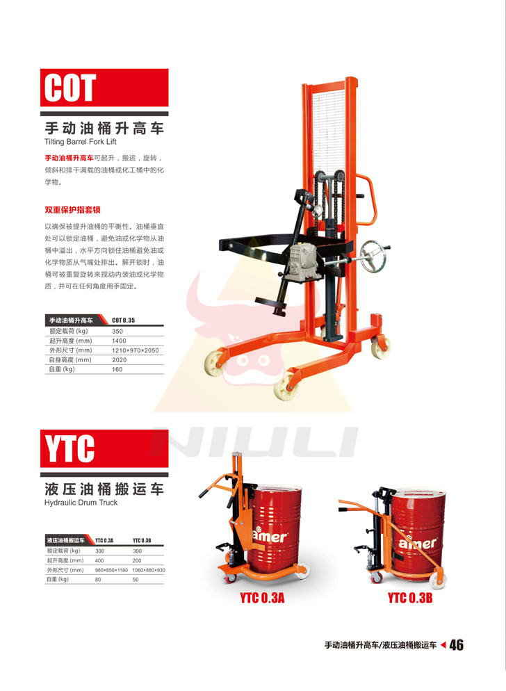 YTC0.3A油桶搬運車可搬運、起升油桶。具有鎖定油桶、升降平穩(wěn)、結(jié)構(gòu)緊湊、操作簡便等特點。