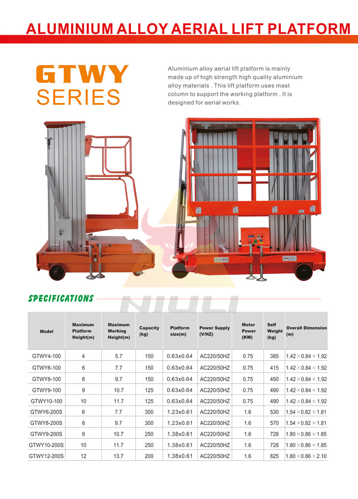 Aluminium alloy aerial lift platform is mainly made up of high strength high quality aluminium alloy materials.This